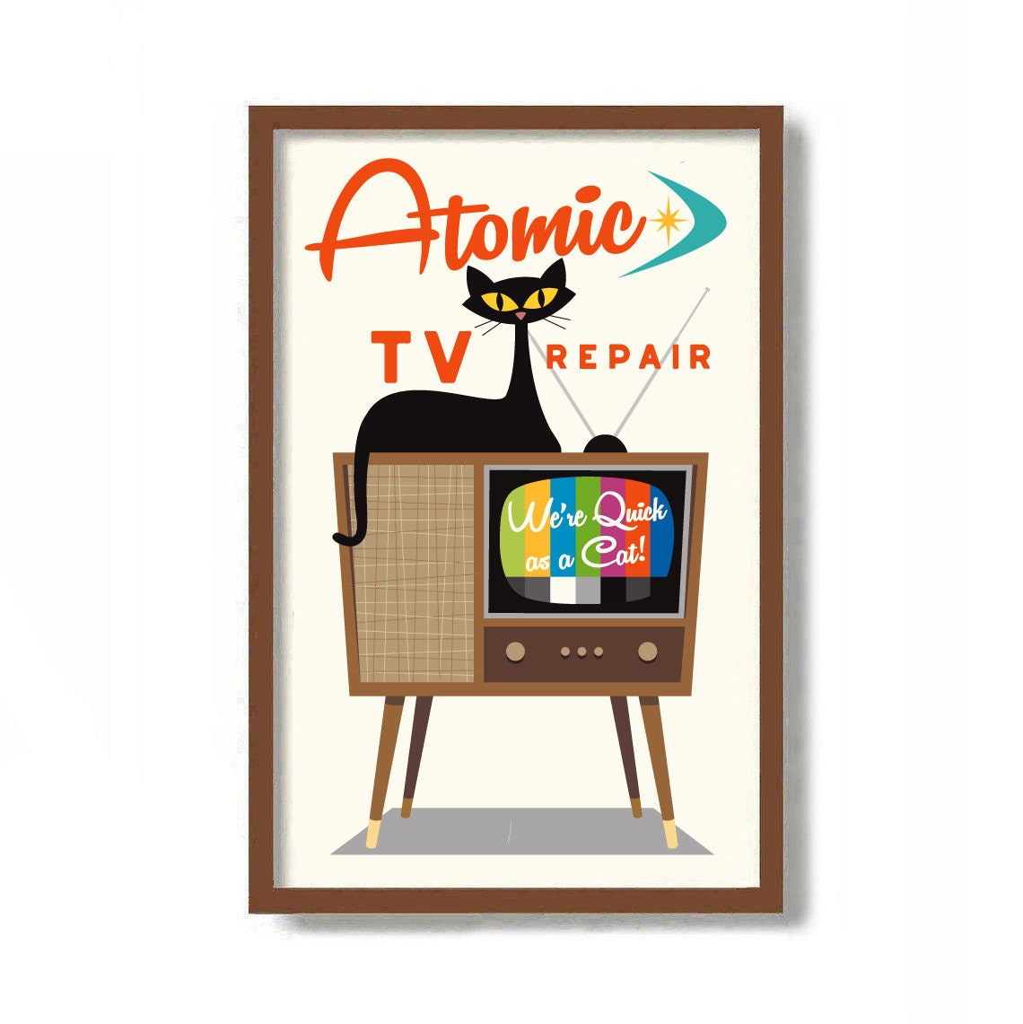 Mid Century Modern Black Cat Art Print Atomic Cat 11x17 Etsy Hong Kong